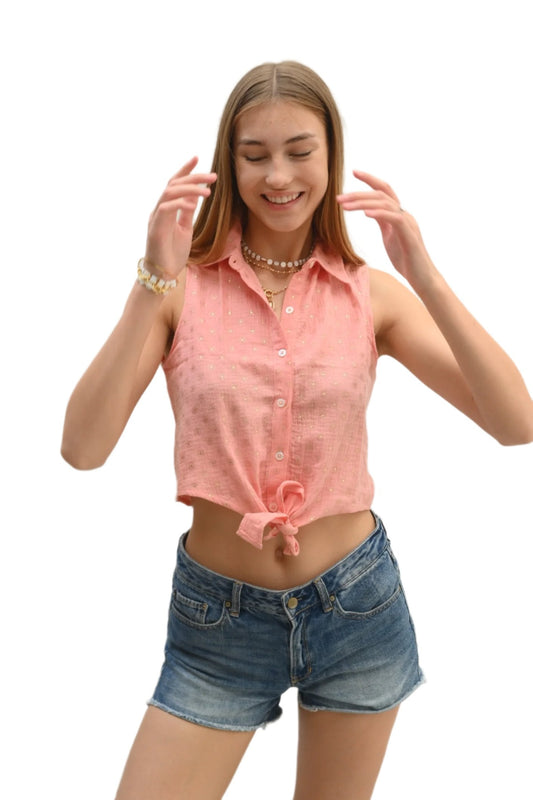 Sleeveless Linen Top - Pink